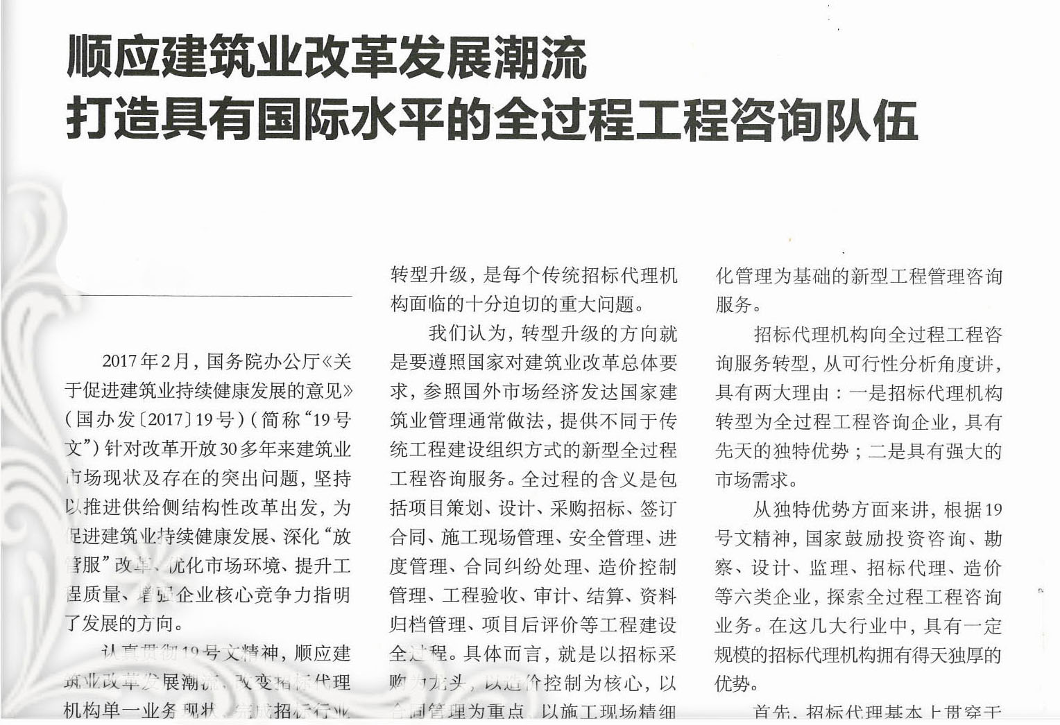 順應(yīng)建筑業(yè)改革發(fā)展潮流打造具有國際水平的全過程工程咨詢隊(duì)伍