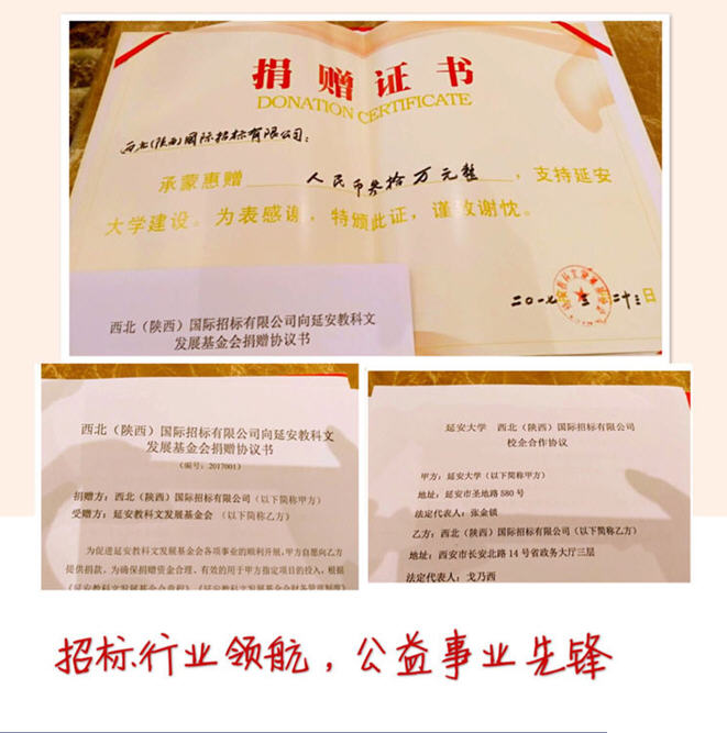 西北(陜西)國際招標有限公司向延安教科文發(fā)展基金會捐贈儀式