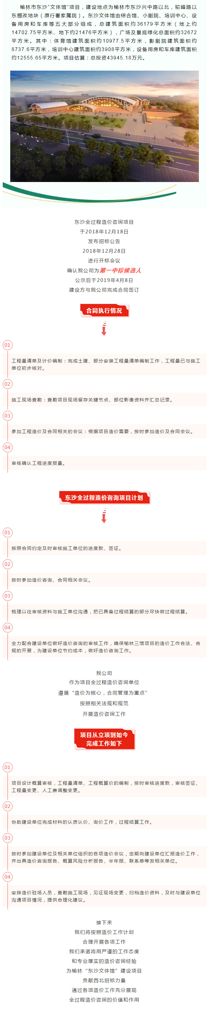 我公司全過程造價咨詢項目——榆林市“東沙文體館”