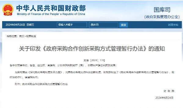 關于印發(fā)《政府采購合作創(chuàng)新采購方式管理暫行辦法》的通知